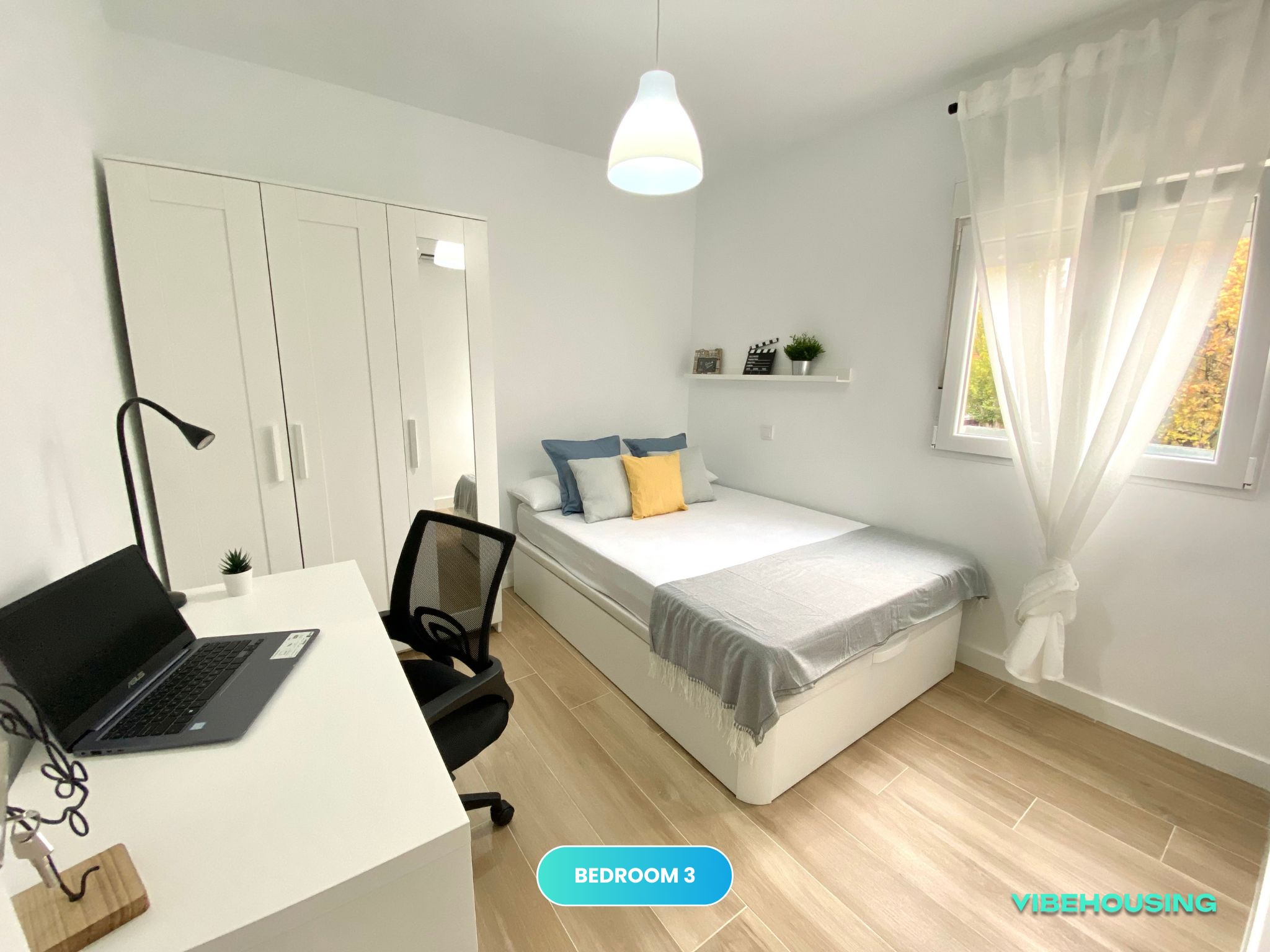 Con aire acondicionado y calefacción, esta habitación es ideal para mantener un ambiente agradable durante todo el año. La cama de 135 cm con canapé proporciona espacio adicional para guardar tus cosas, y la vista exterior llena la habitación de luz natural. El apartamento incluye WiFi de alta velocidad y servicio de limpieza de zonas comunes quincenal, asegurando que todo esté siempre en orden. ¡Perfecta para estudiar, trabajar y relajarse!