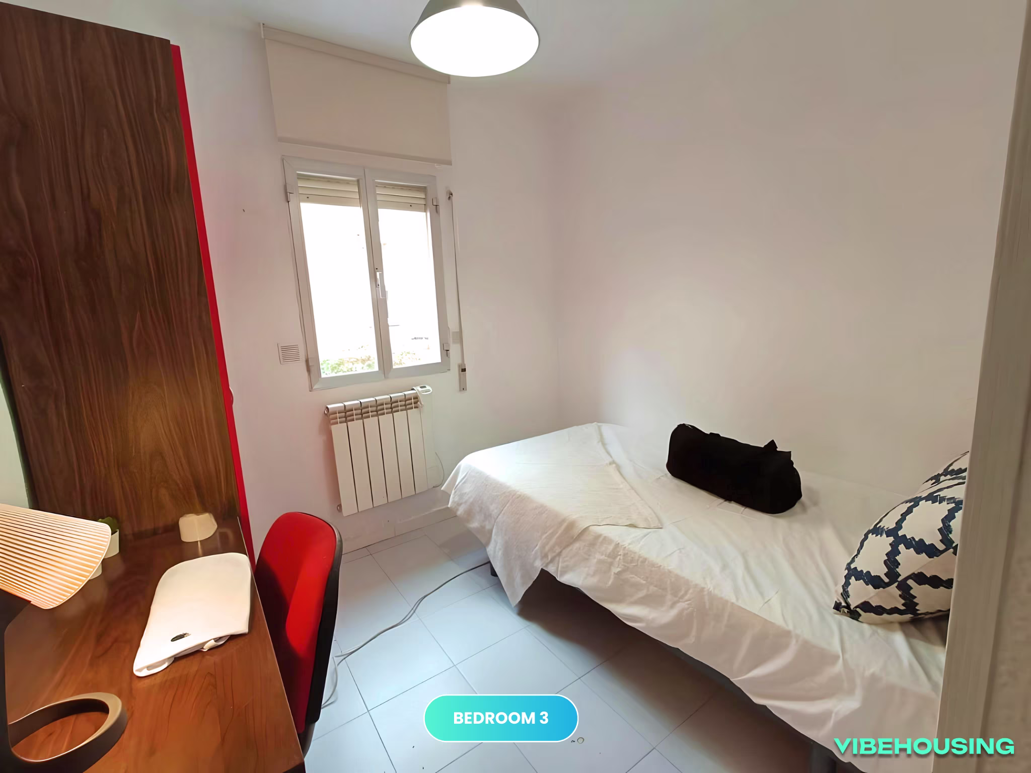 Esta habitación de 6 m² en un apartamento de coliving en Lilas 4, Getafe es ideal para estudiantes de la UC3M y jóvenes profesionales. Con una cama de 105 cm con somier y una vista exterior, ofrece un ambiente cómodo y bien iluminado. El apartamento incluye WiFi de alta velocidad y servicio de limpieza quincenal para mantener el espacio siempre limpio. Ubicada cerca de la Universidad Carlos III y del transporte público, ¡es la opción perfecta para quienes buscan un lugar cómodo y bien comunicado en Getafe!