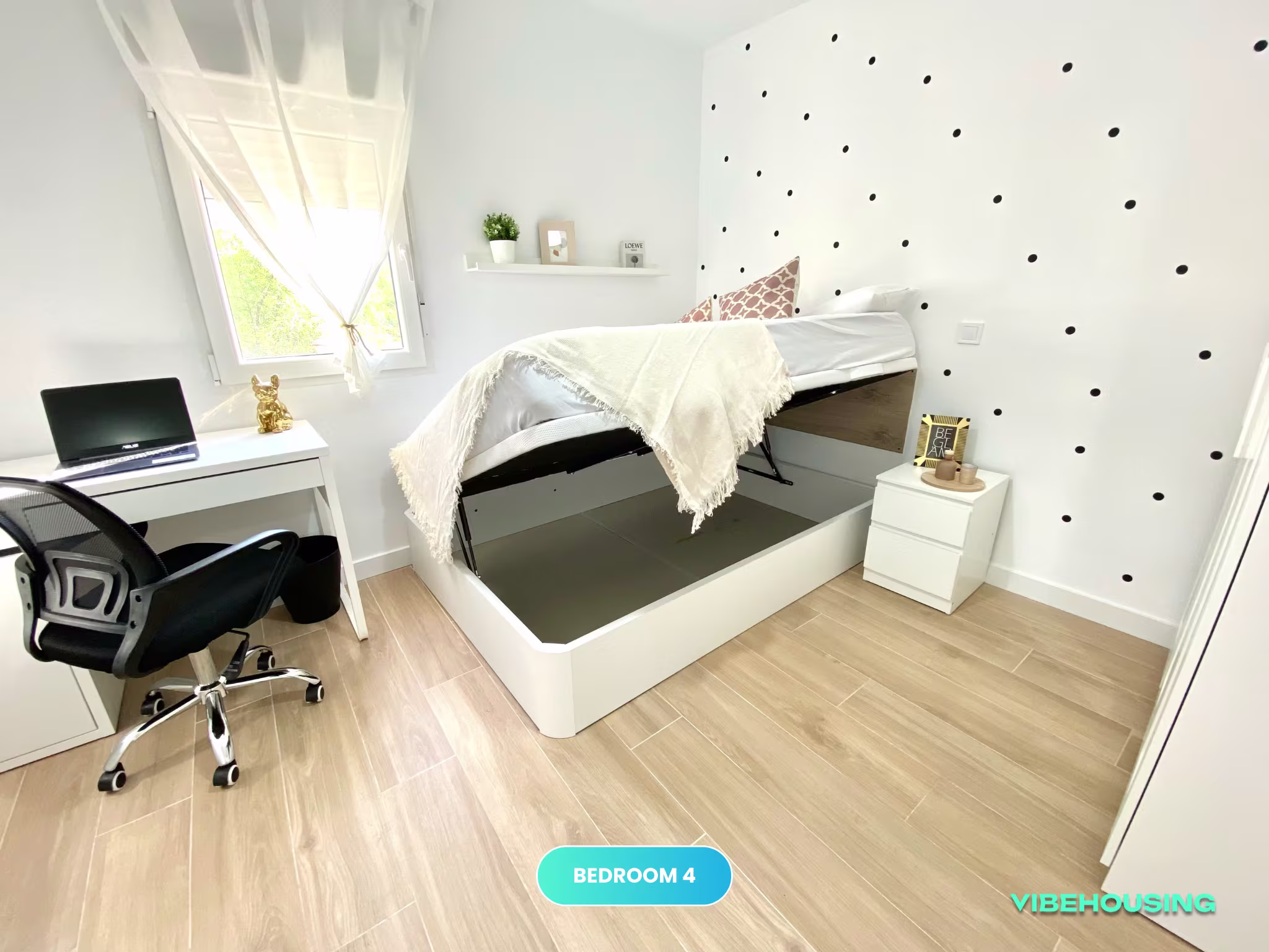 Este apartamento cuenta con aire acondicionado, lo que garantiza la comodidad en cualquier época del año. Ubicado en una zona céntrica de Getafe, tendrás a tu alcance supermercados, cafeterías, restaurantes y opciones de ocio, todo a pocos minutos de tu hogar. Es el lugar perfecto para combinar la vida académica y profesional con el mejor ambiente de coliving.